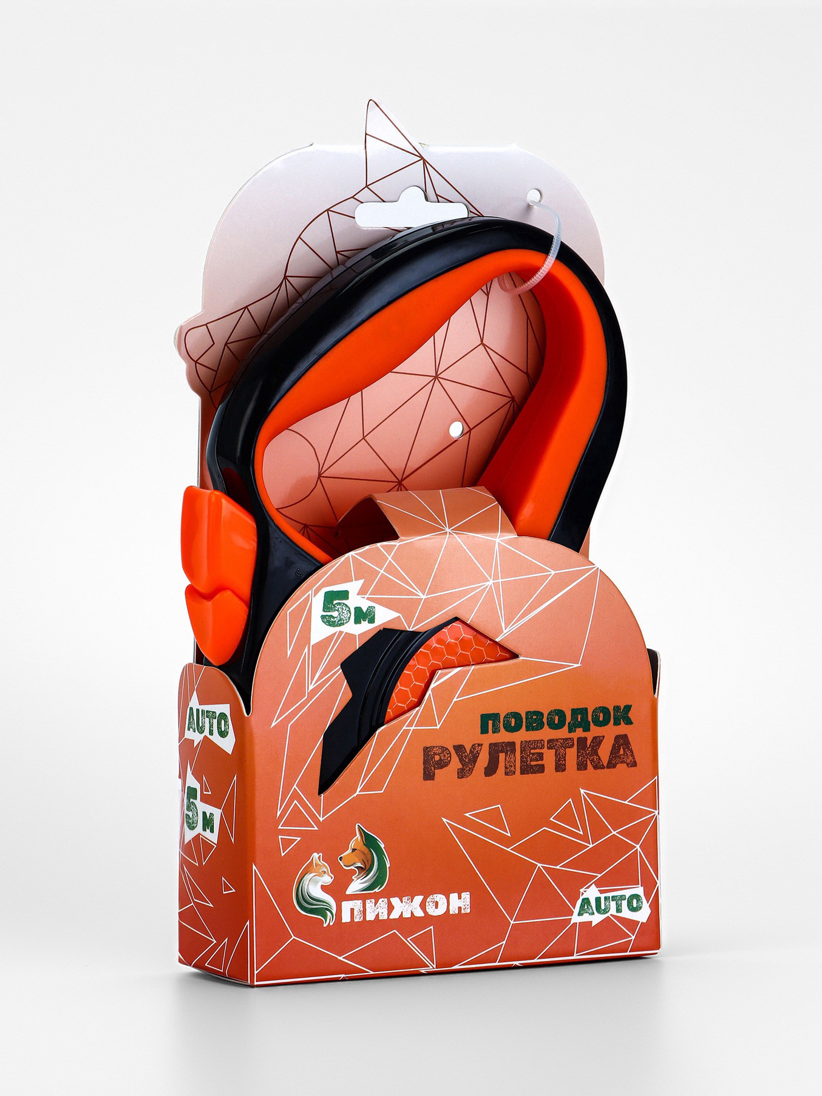 Рулетка 5 м, до 25 кг, светоотражающая, трос, прорезиненная ручка, оранжевая, 12.5x17.5x3 см., Пижон, Китай