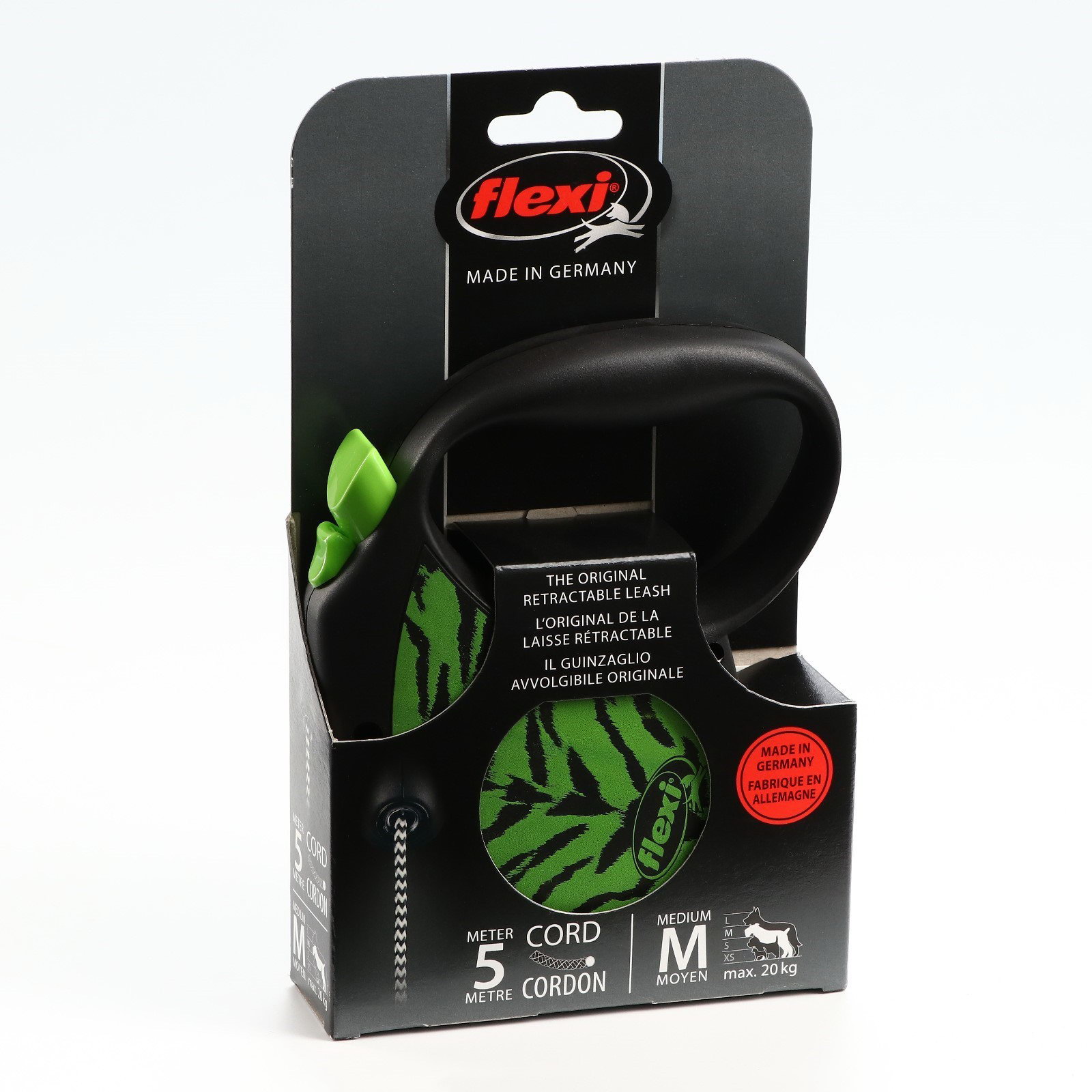 Рулетка Safari M, 5 м, тром, до 20 кг, зеленый тигр, Flexi, Германия