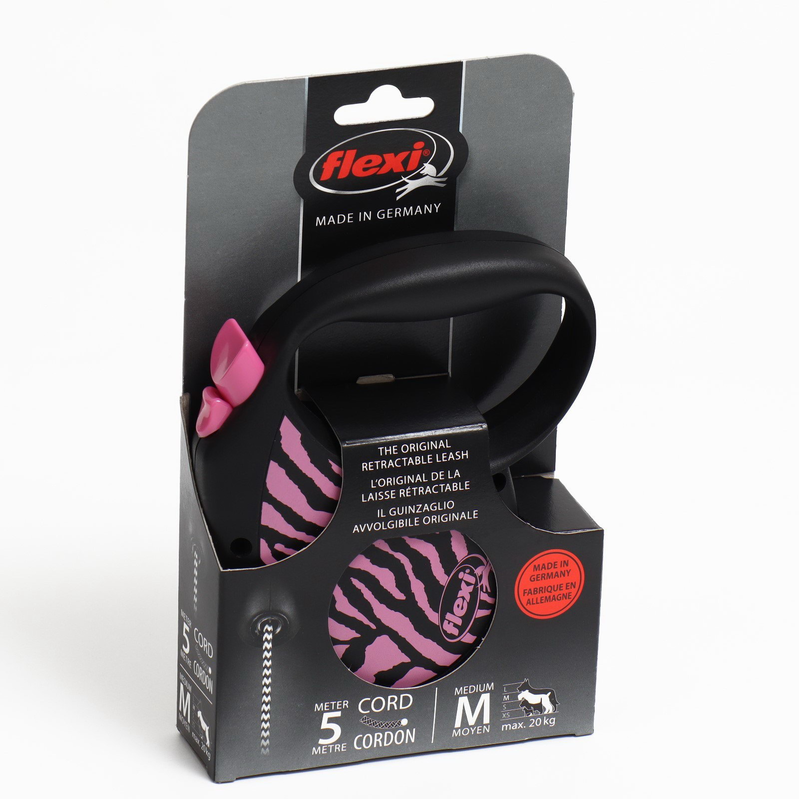Рулетка Safari cord M, 5 м, трос, до 20 кг, розовая зебра, Flexi, Германия
