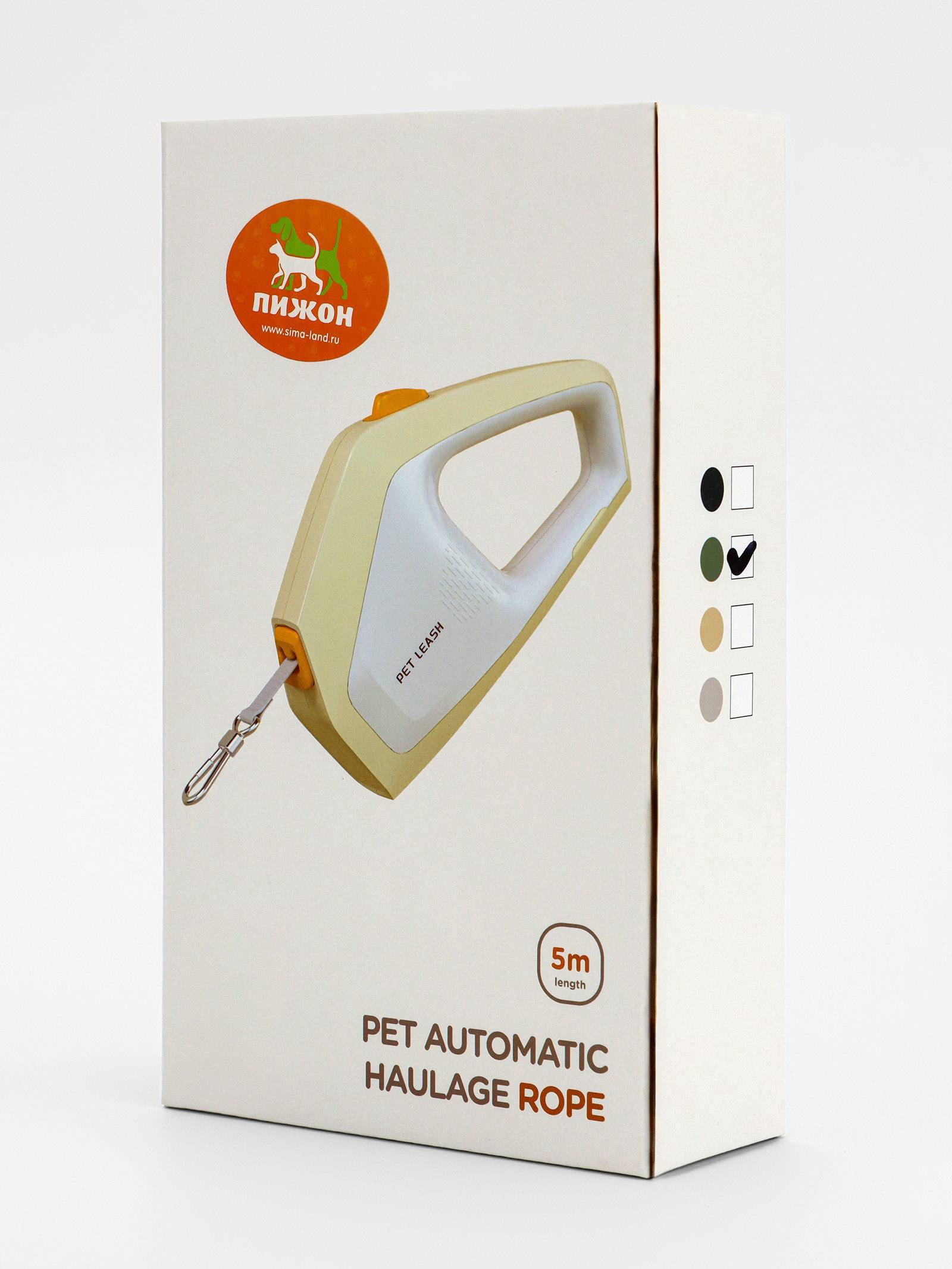 Рулетка - поводок для собак, лента 3 метра, белая, зелёная, Пижон, Китай