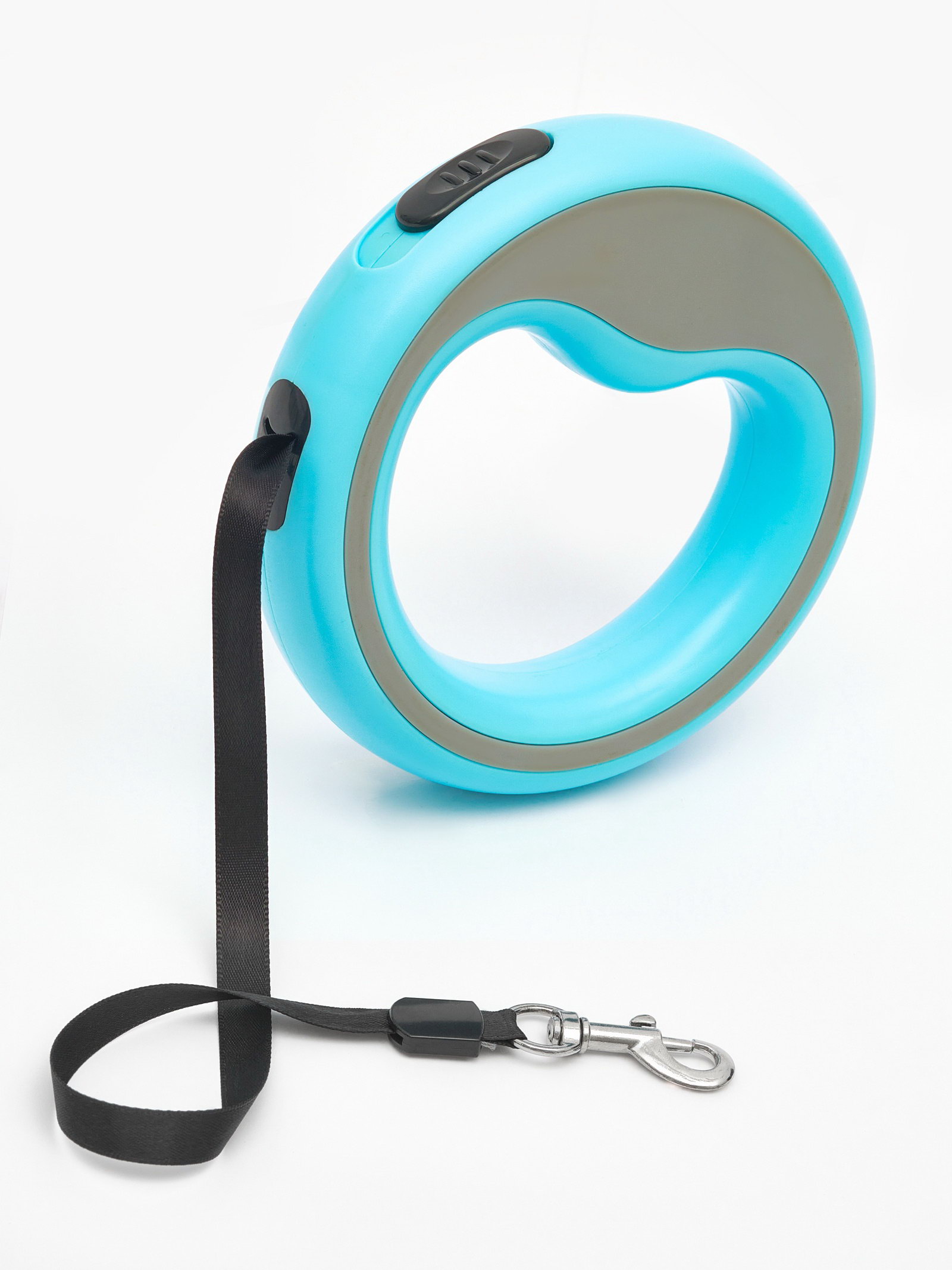Рулетка - поводок для собак, лента 3 м, голубой/серый, Китай