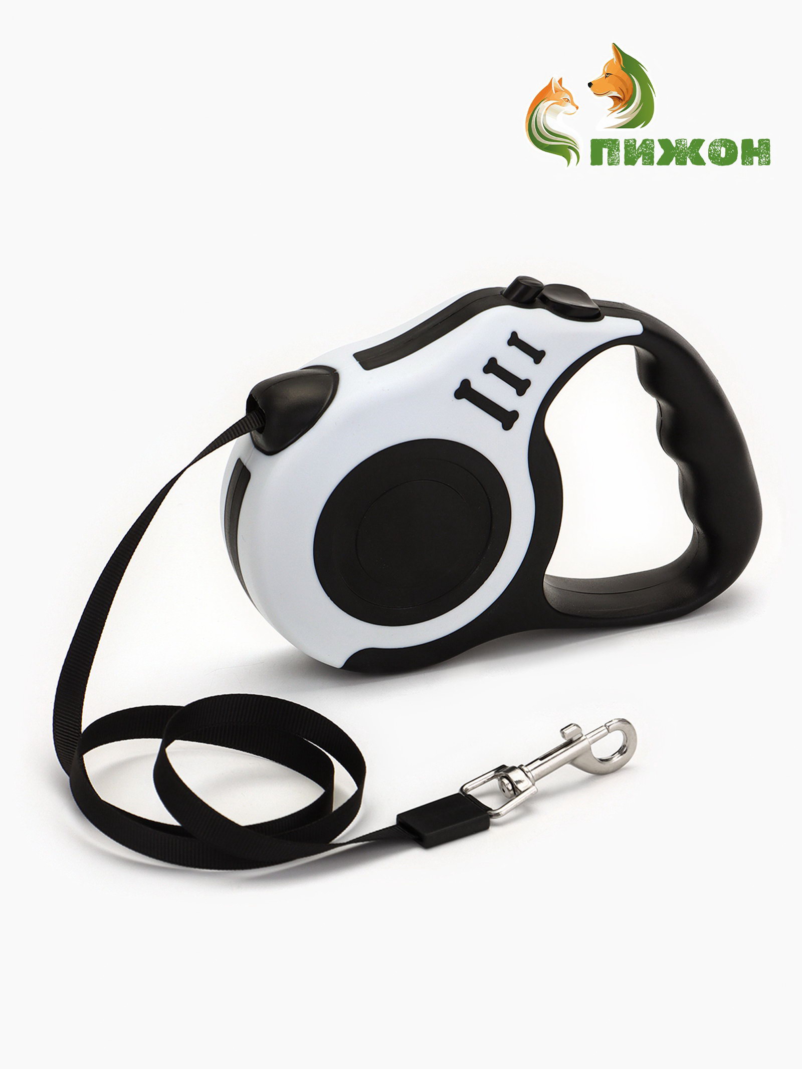 Рулетка для собак "Зарница", 5 м, до 15 кг, чёрно-белая, Пижон, Китай