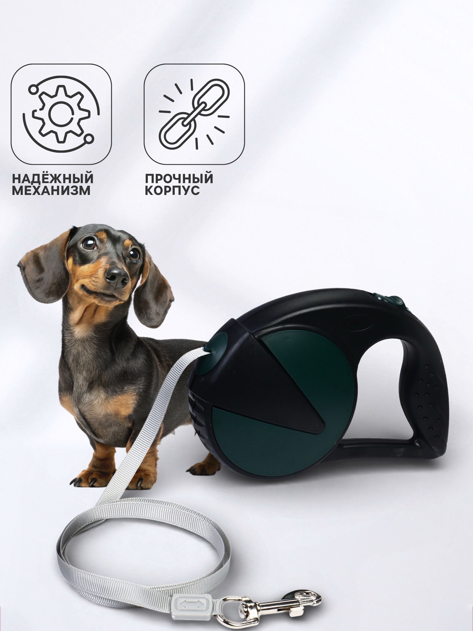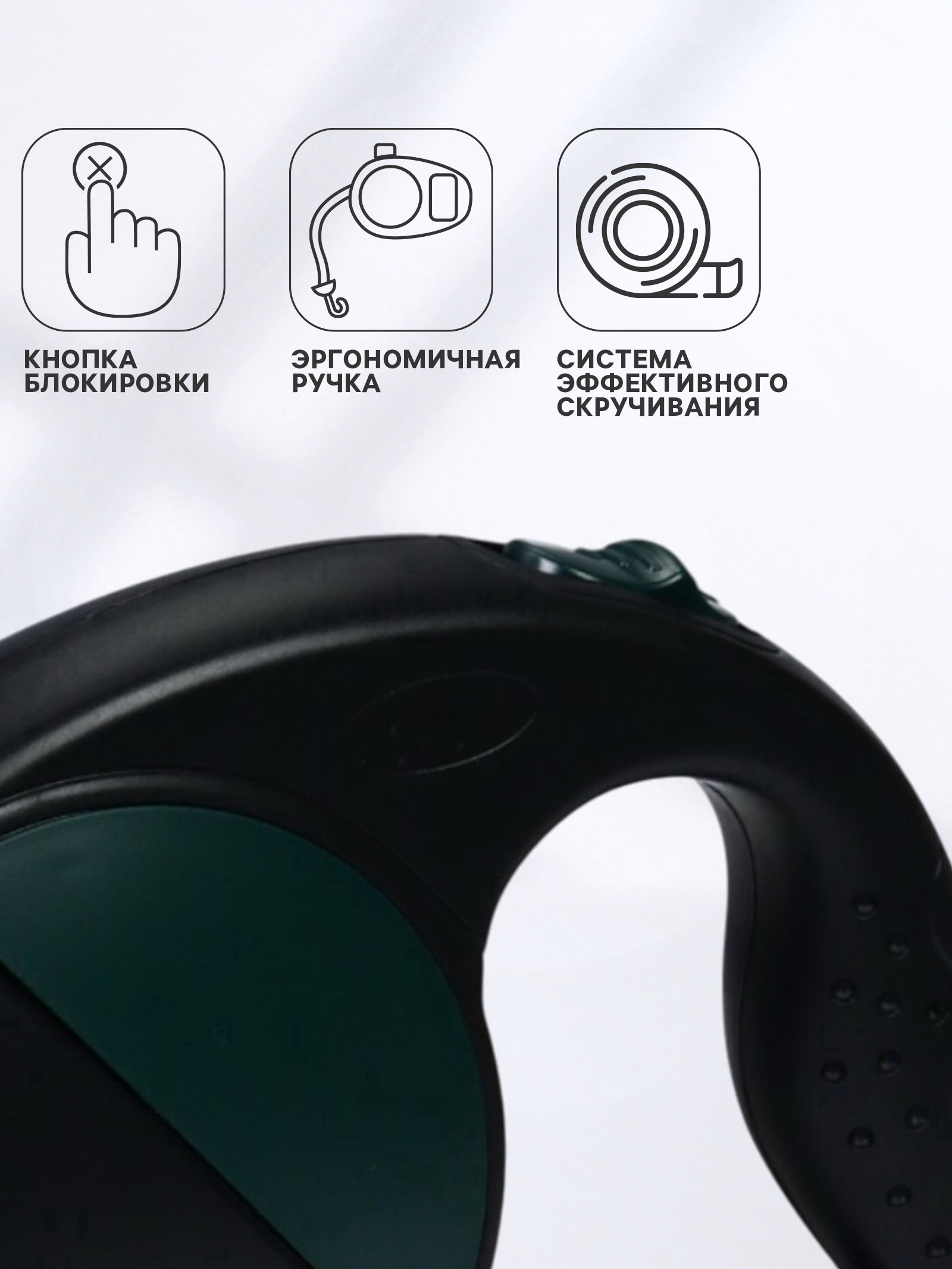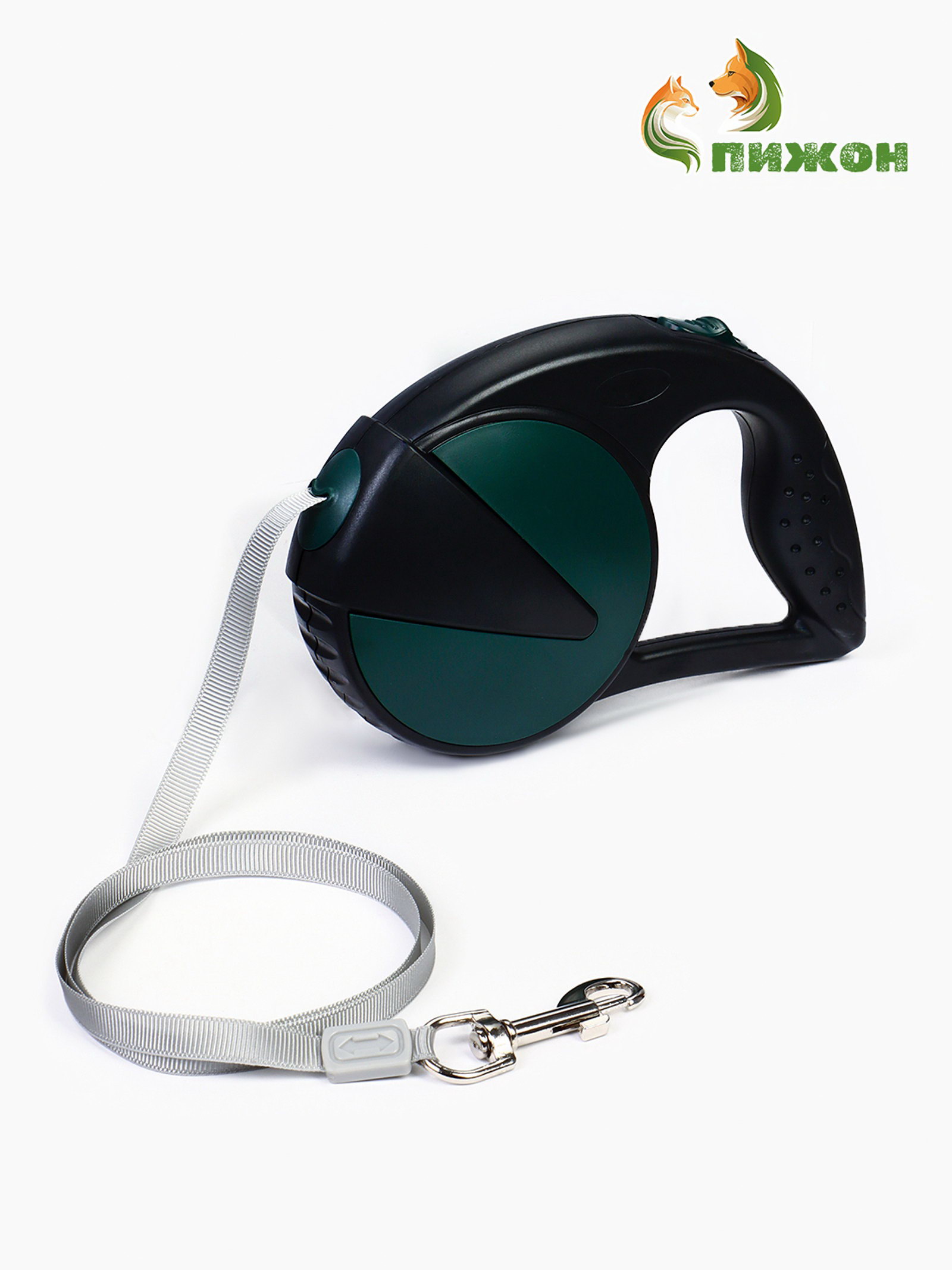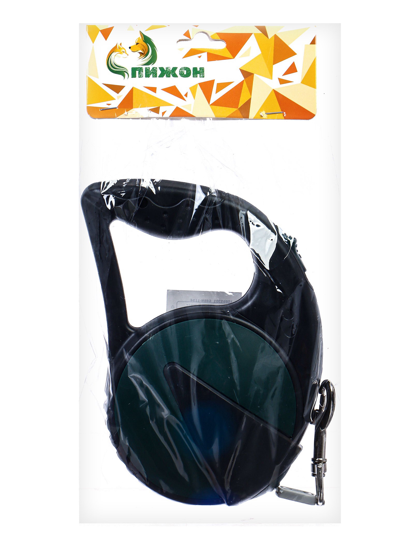 Рулетка - поводок для собак, лента 6 м, чёрная.зелёная, Пижон, Китай