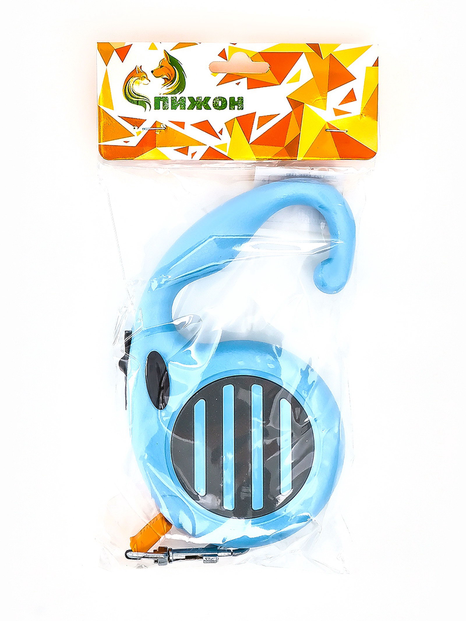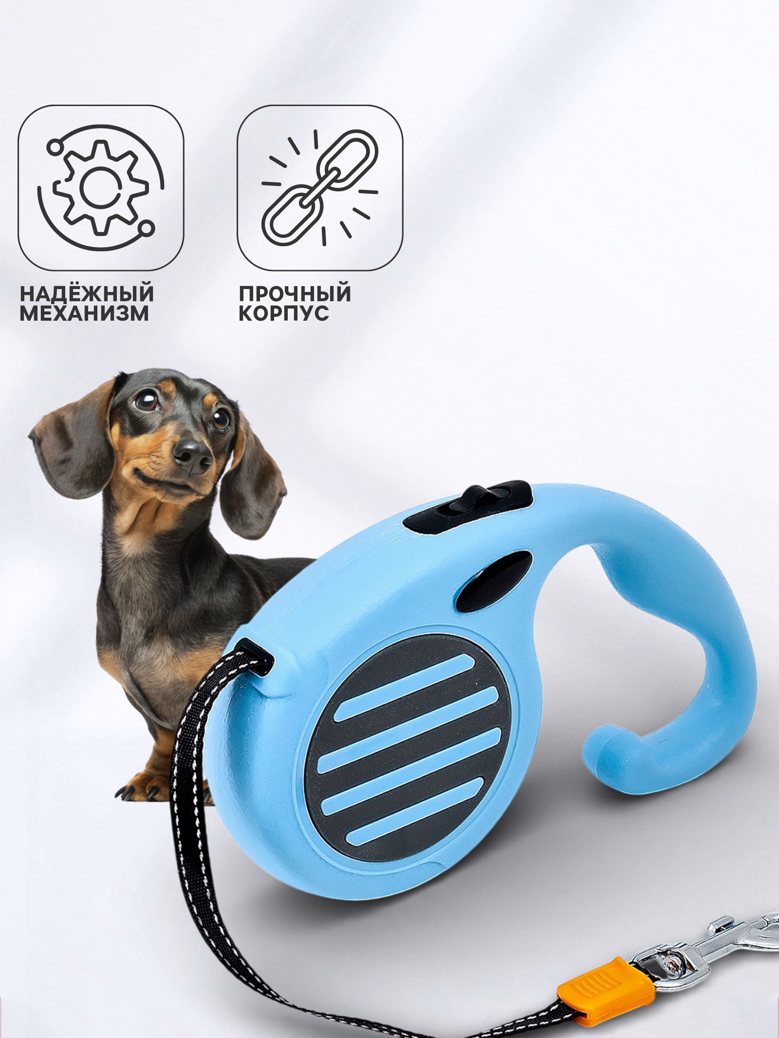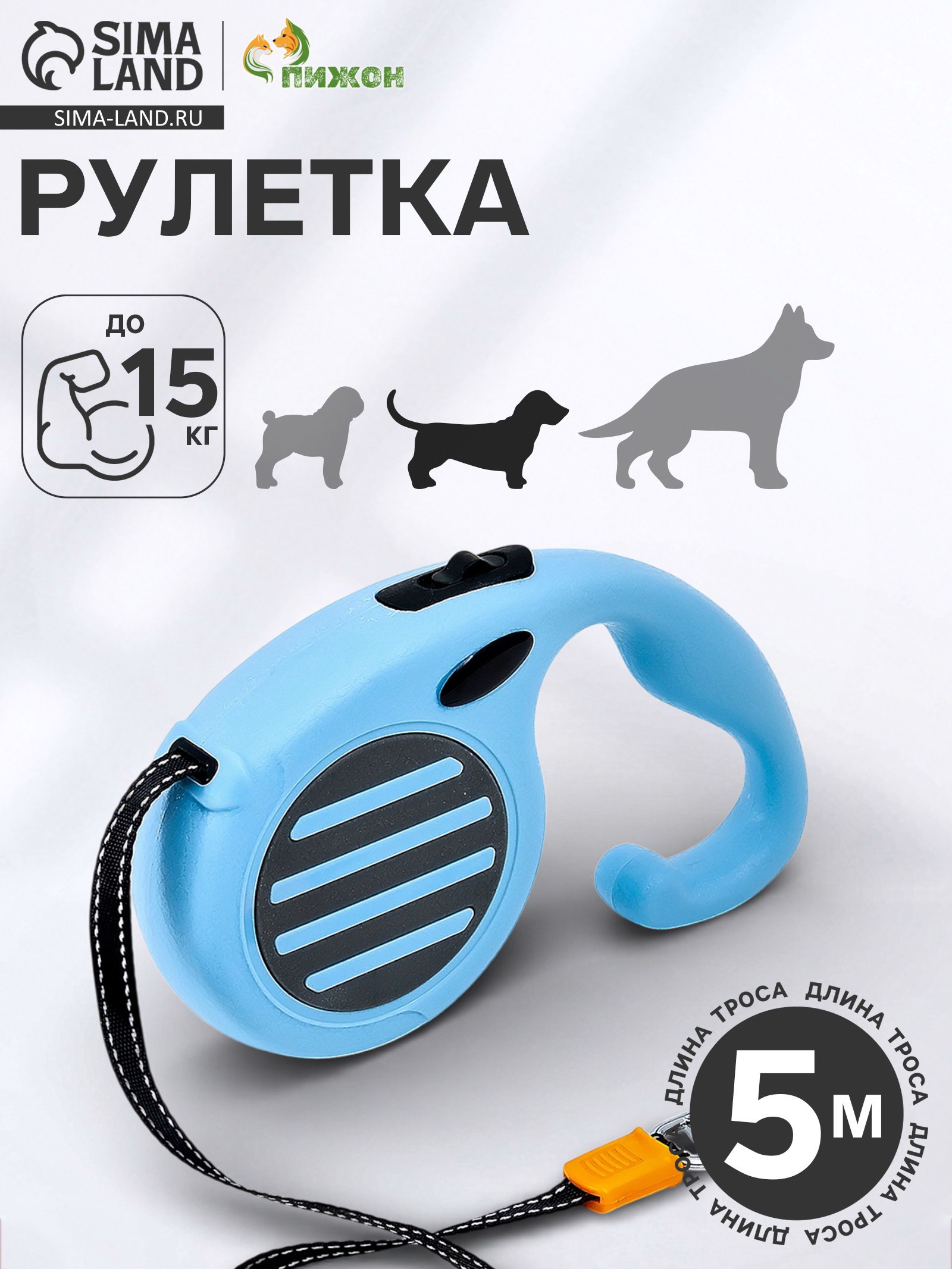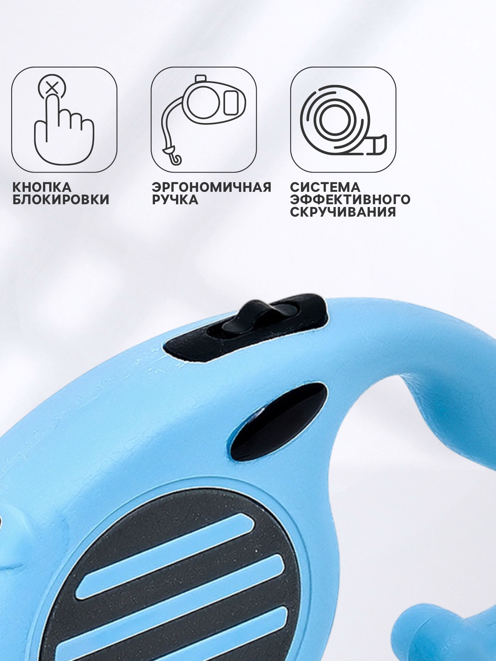 Рулетка - поводок для собак, лента 5 м, голубая, Пижон, Китай