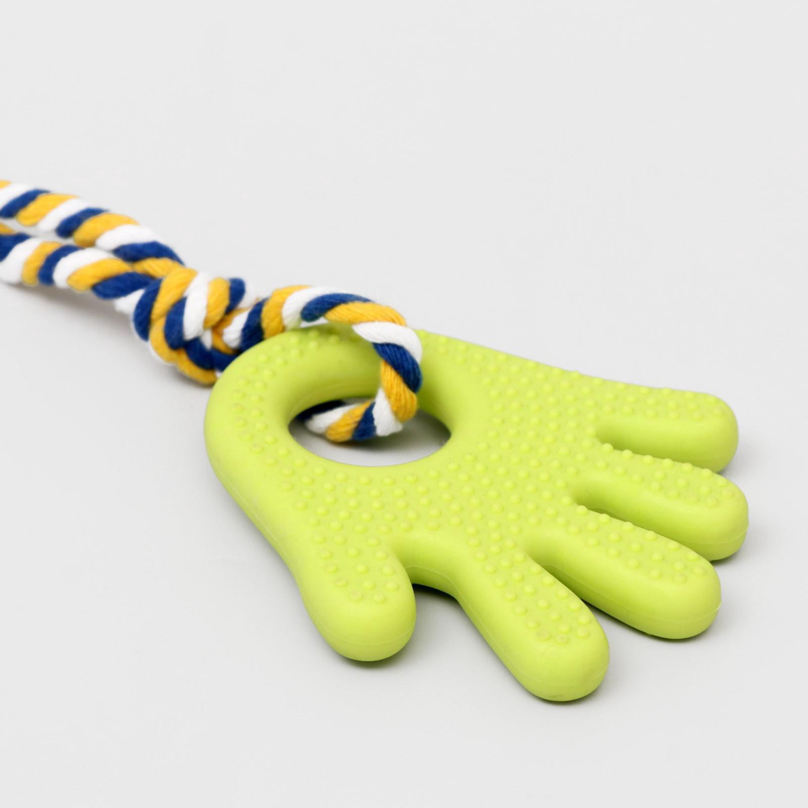 Игрушка жевательная для собак "Ладошка", 10 см, с канатом, салатовая, 9x10x1.5 см., Пижон, Китай