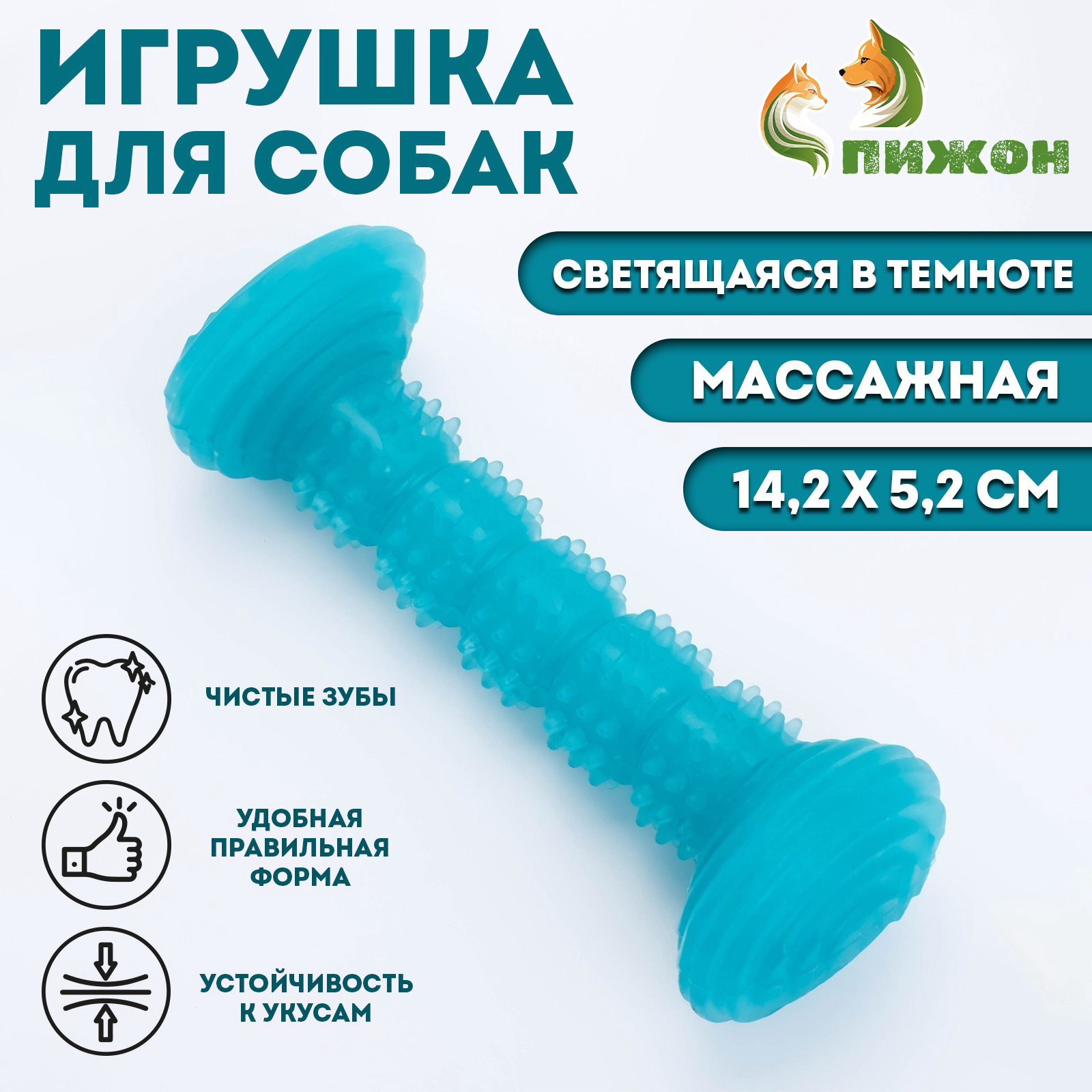Жевательная игрушка для собак "Палка", светящаяся, массажная, 14.2x5.2 см, голубая, Пижон, Китай
