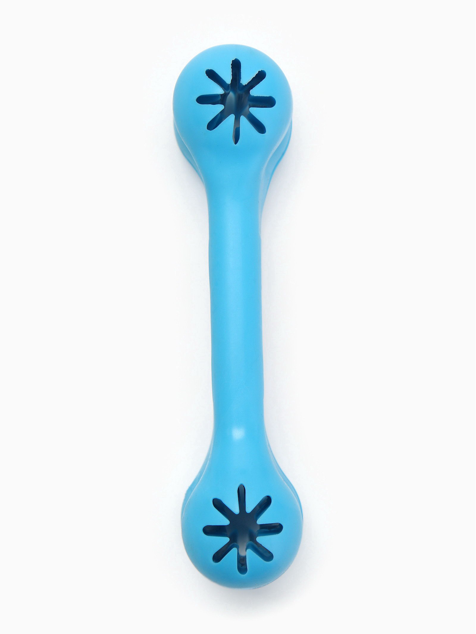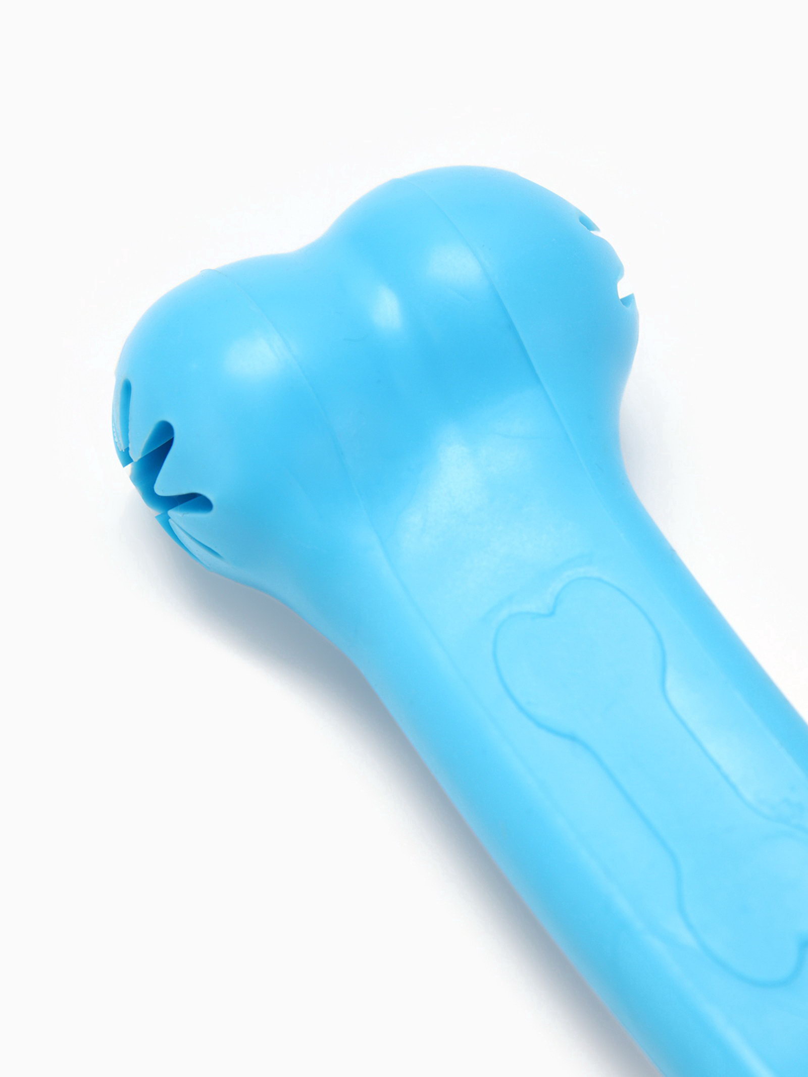 Игрушка жевательная "Вкусная кость" с отверстиями для лакомств, TPR, 11 см, голубая, 11 см., Пижон, Китай