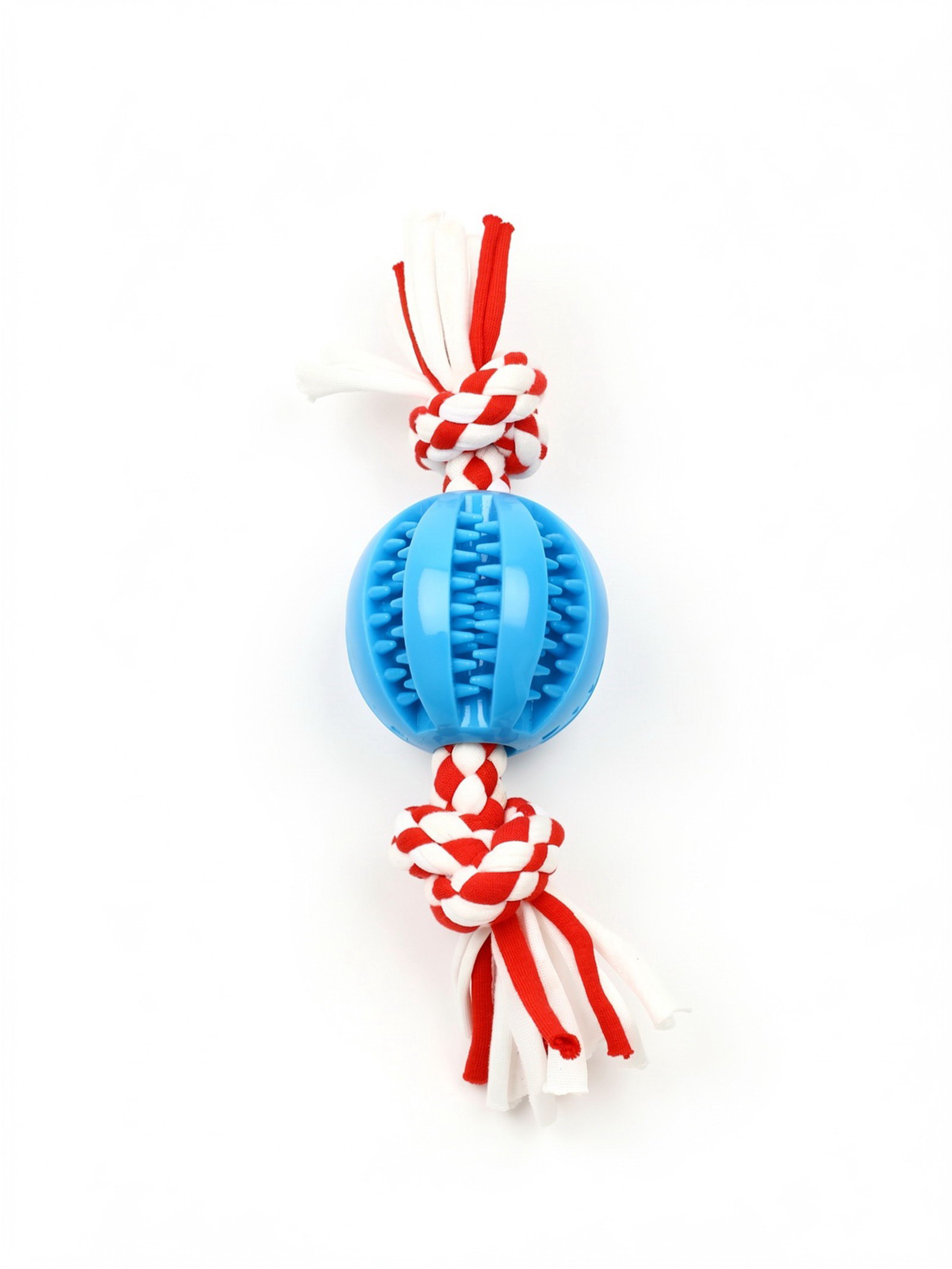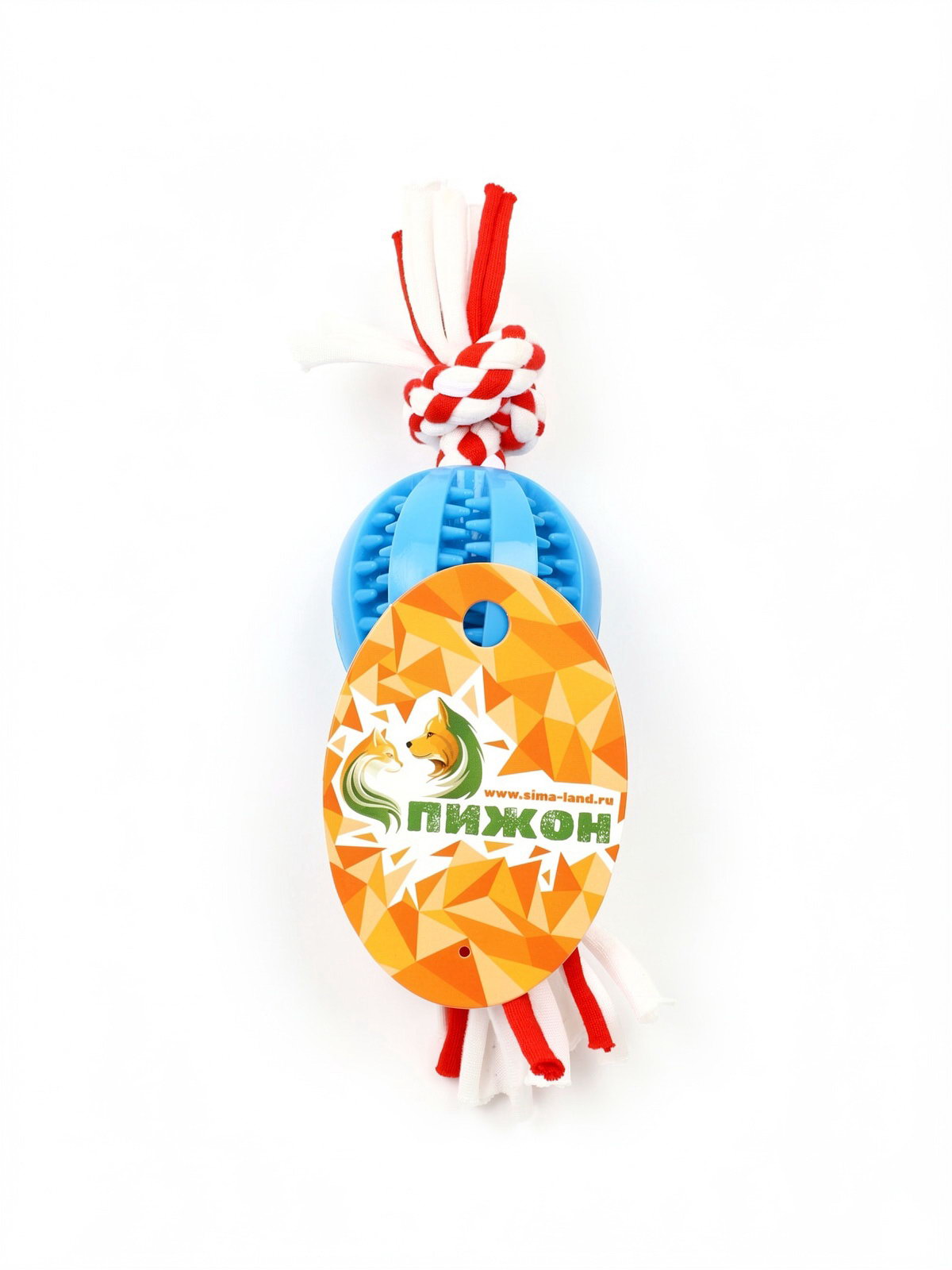 Порода/размер: Малые породы, Средние породы Размер упаковки: 5 x 5 x 15 см. tnved: 5609000000 Цвет: Голубой Канатная игрушка комбинированный тренажёр для зубов и инстинктов собак мелких и средних пород. Игрушка сочетает мягкий канат и эластичный TPR-мячик, создавая разнообразную текстуру для жевания. Голубой цвет делает её легко заметной на полу или траве. Особенности: