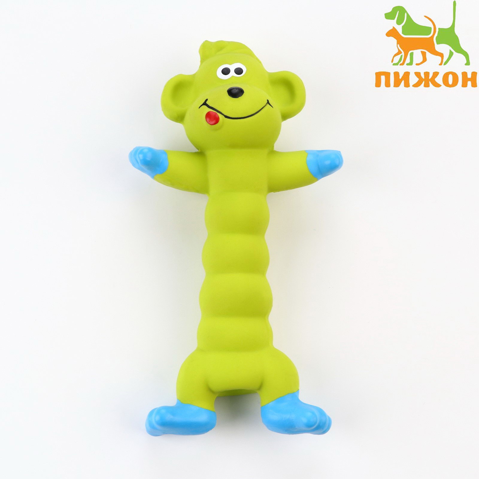 Игрушка пищащая для собак из латекса "Обезьянка", 21 см, зелёная, 21 см., Пижон, Китай
