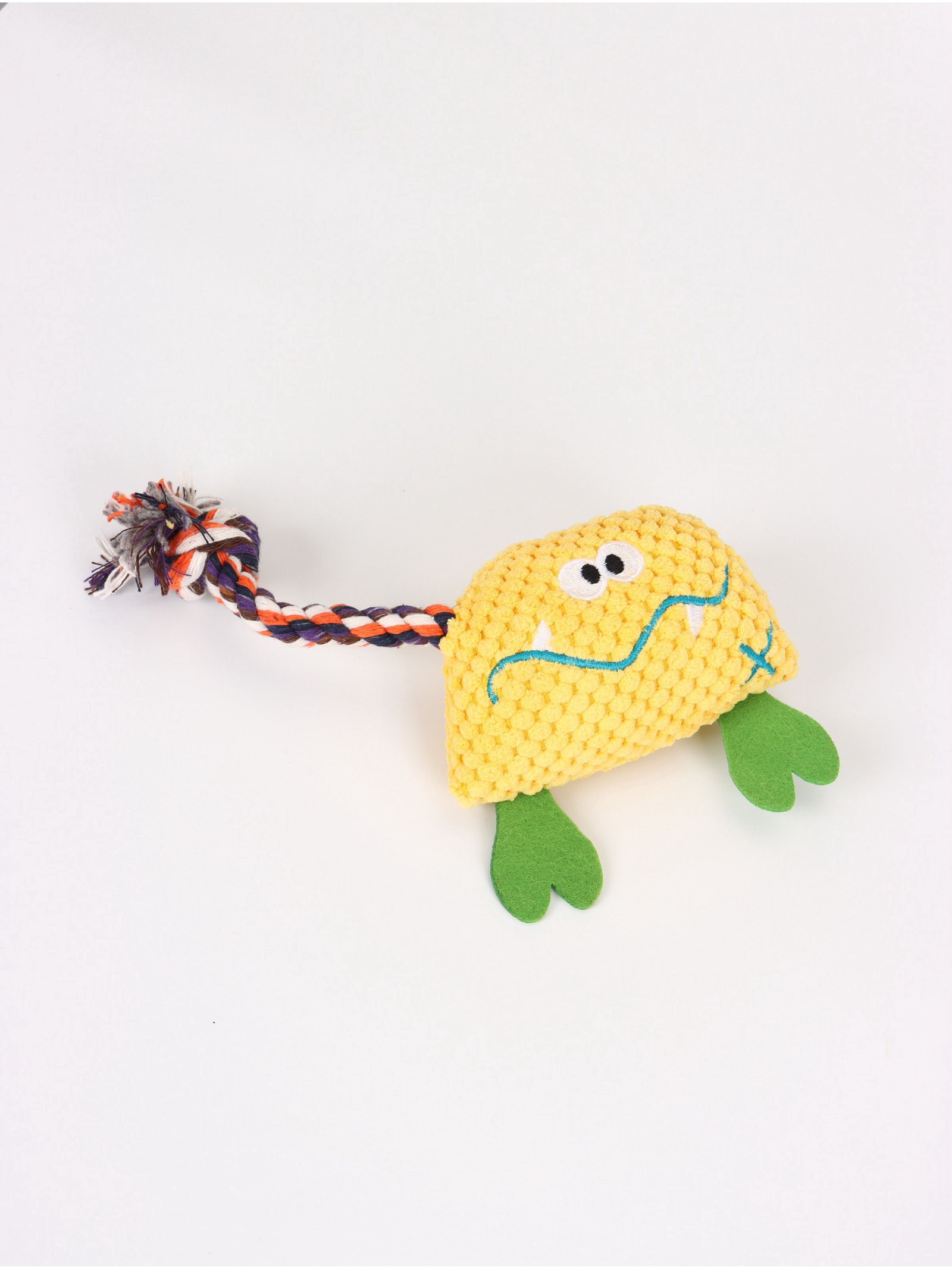 Мягкая игрушка для собак "Монстрик с канатом", 23 см, с пищалкой, жёлтая, 23 см., Пижон, Китай