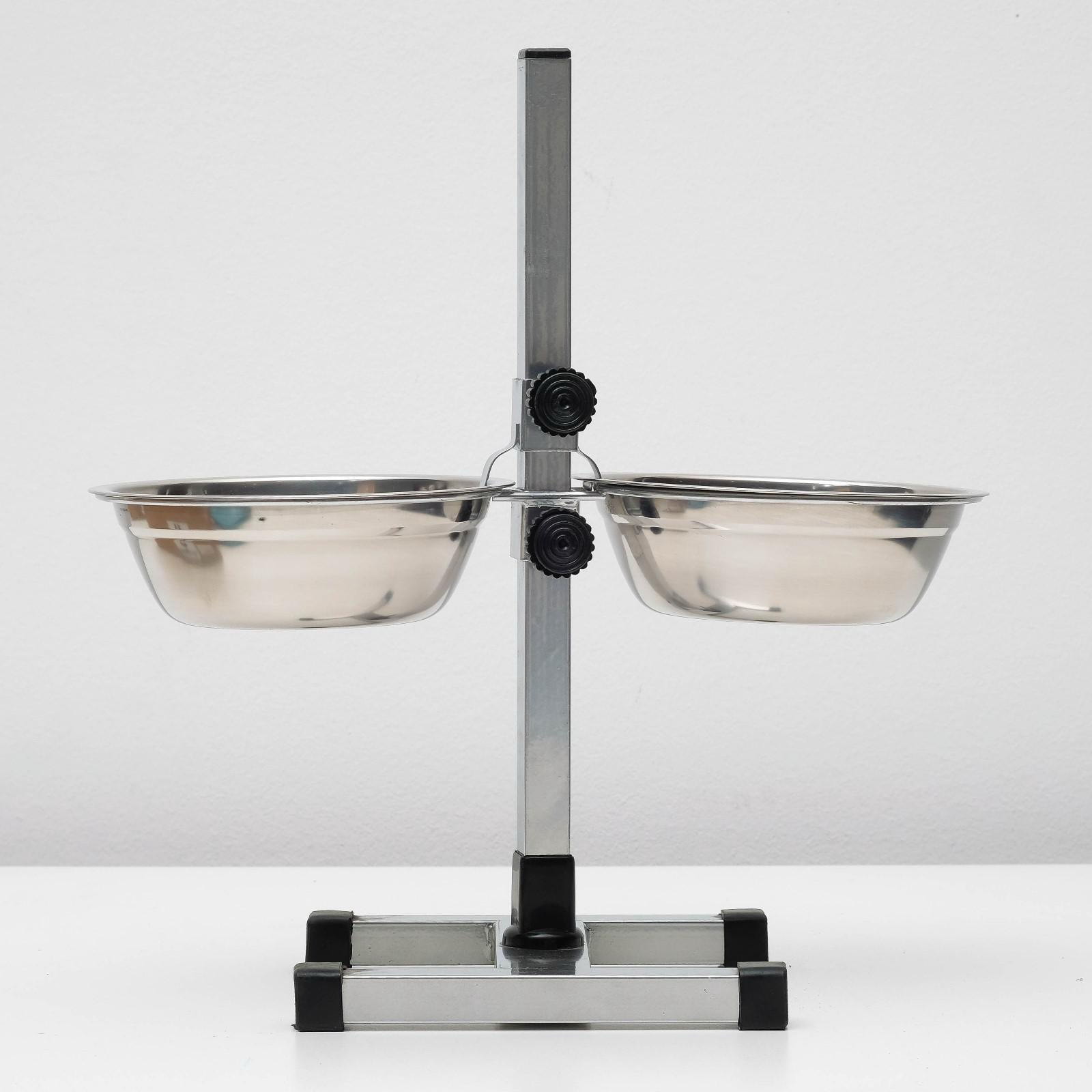 Подставка с мисками, 2x1.5 л, высота 50 см, разборная с верхним фиксатором, хром, 1500 мл., Пижон, Россия