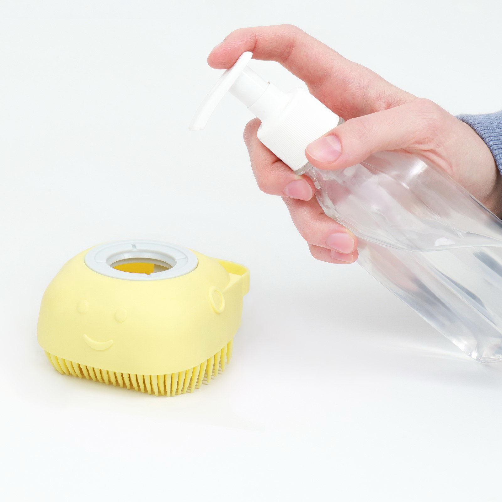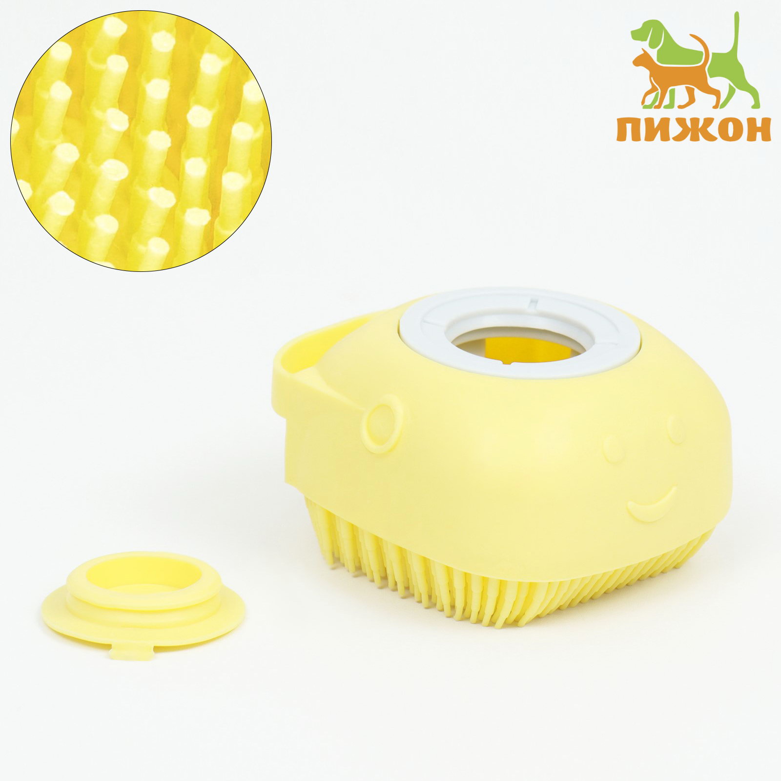 Щётка для мытья и массажа животных, с емкостью для шампуня, желтая, Пижон, Китай