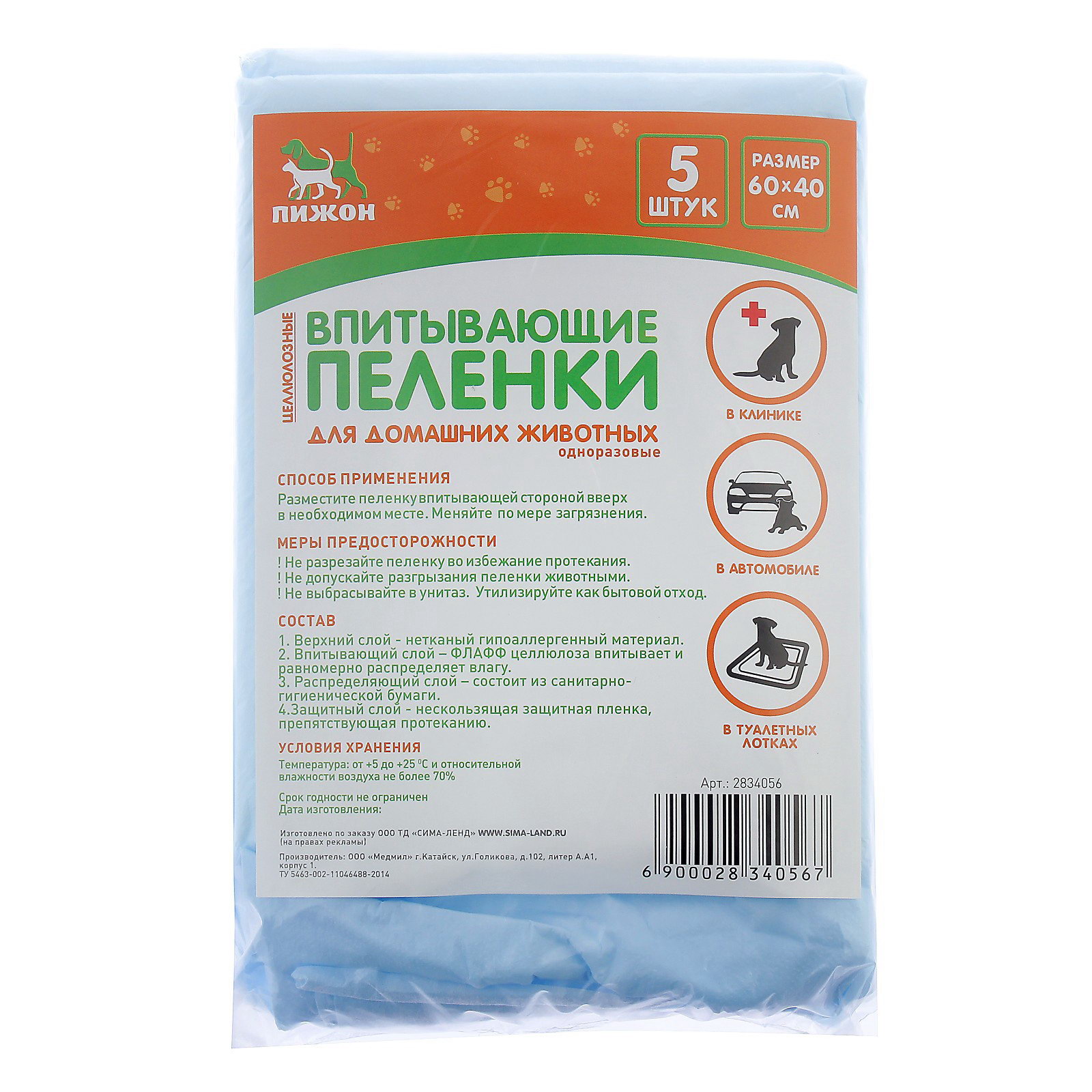 Пеленки впитывающие "ПИЖОН" для животных целлюлозные, 60x40 см, Пижон, Россия