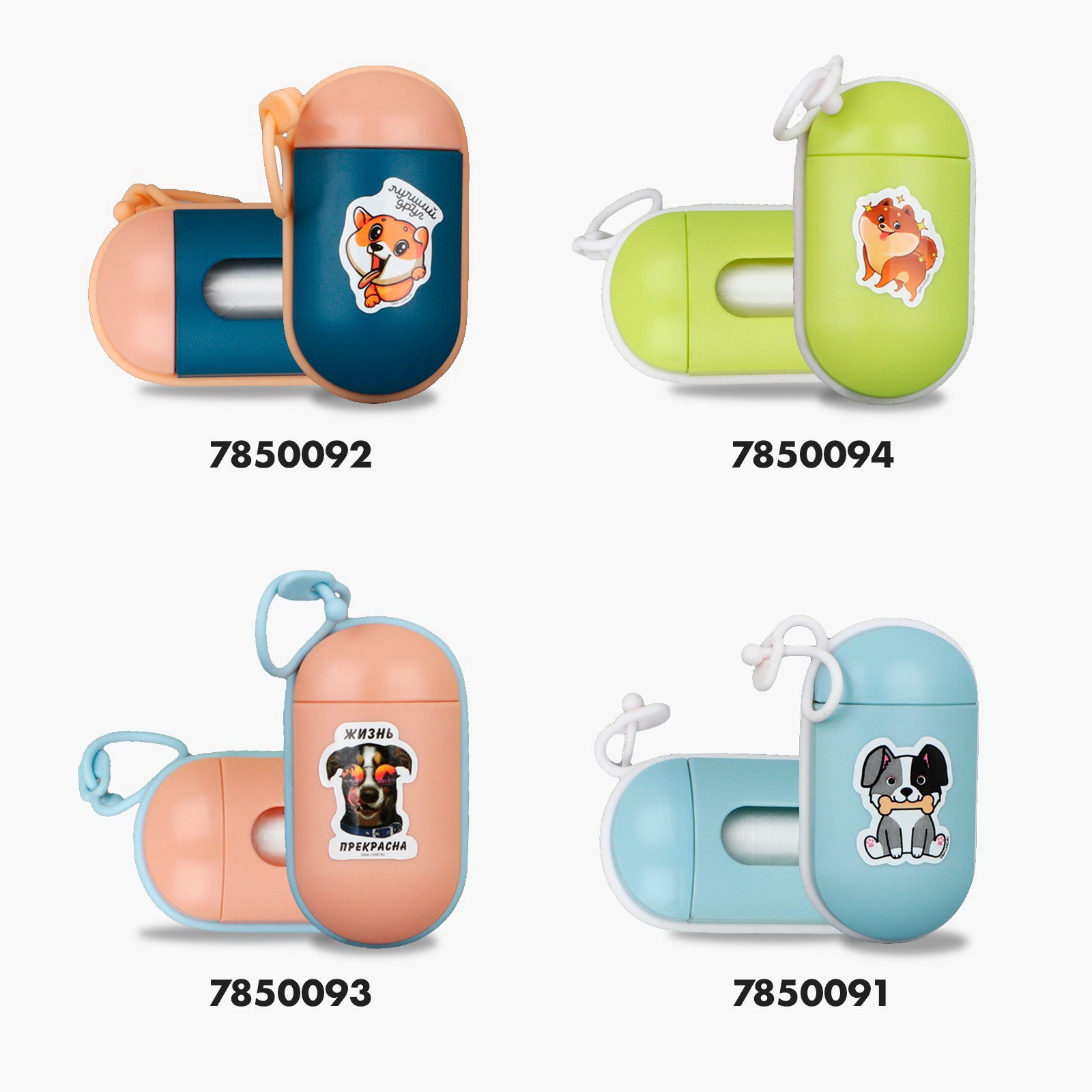 Пакеты для уборки за собаками в контейнере "На прогулке", голубой, 4.3x9x3.5 см., Пушистое счастье, Китай