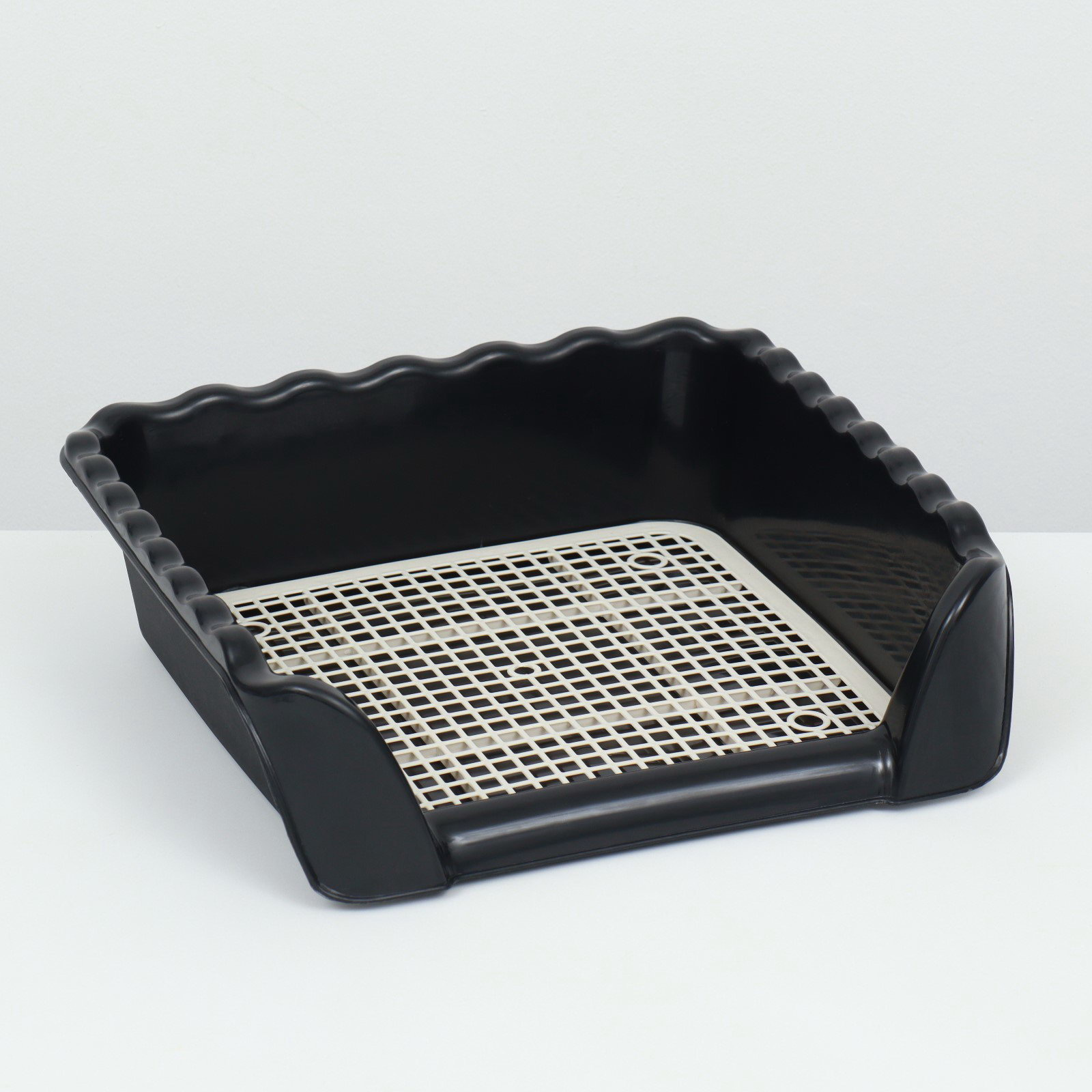 Туалет для собак с высокими бортами и съемной сеткой 38x36x12 см, чёрный, 36x38x12 см., Пижон, Китай