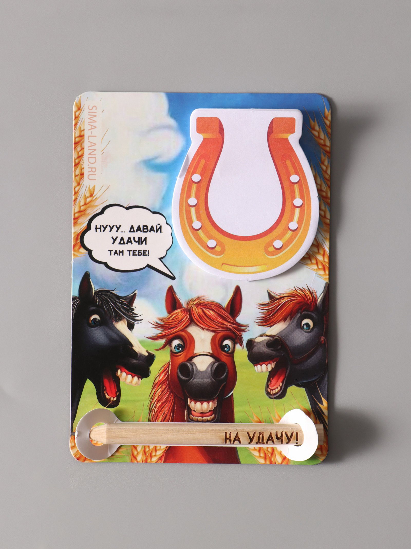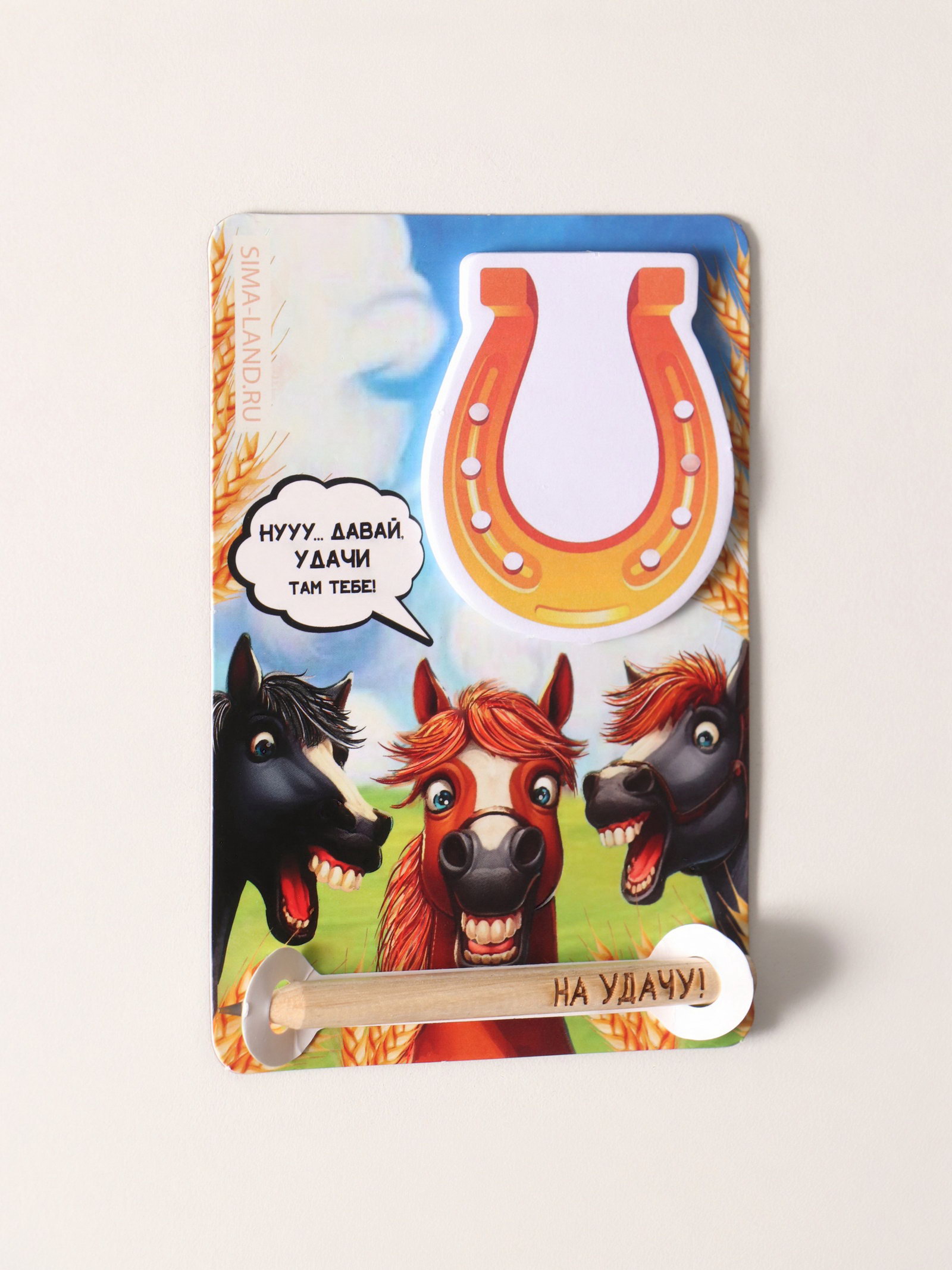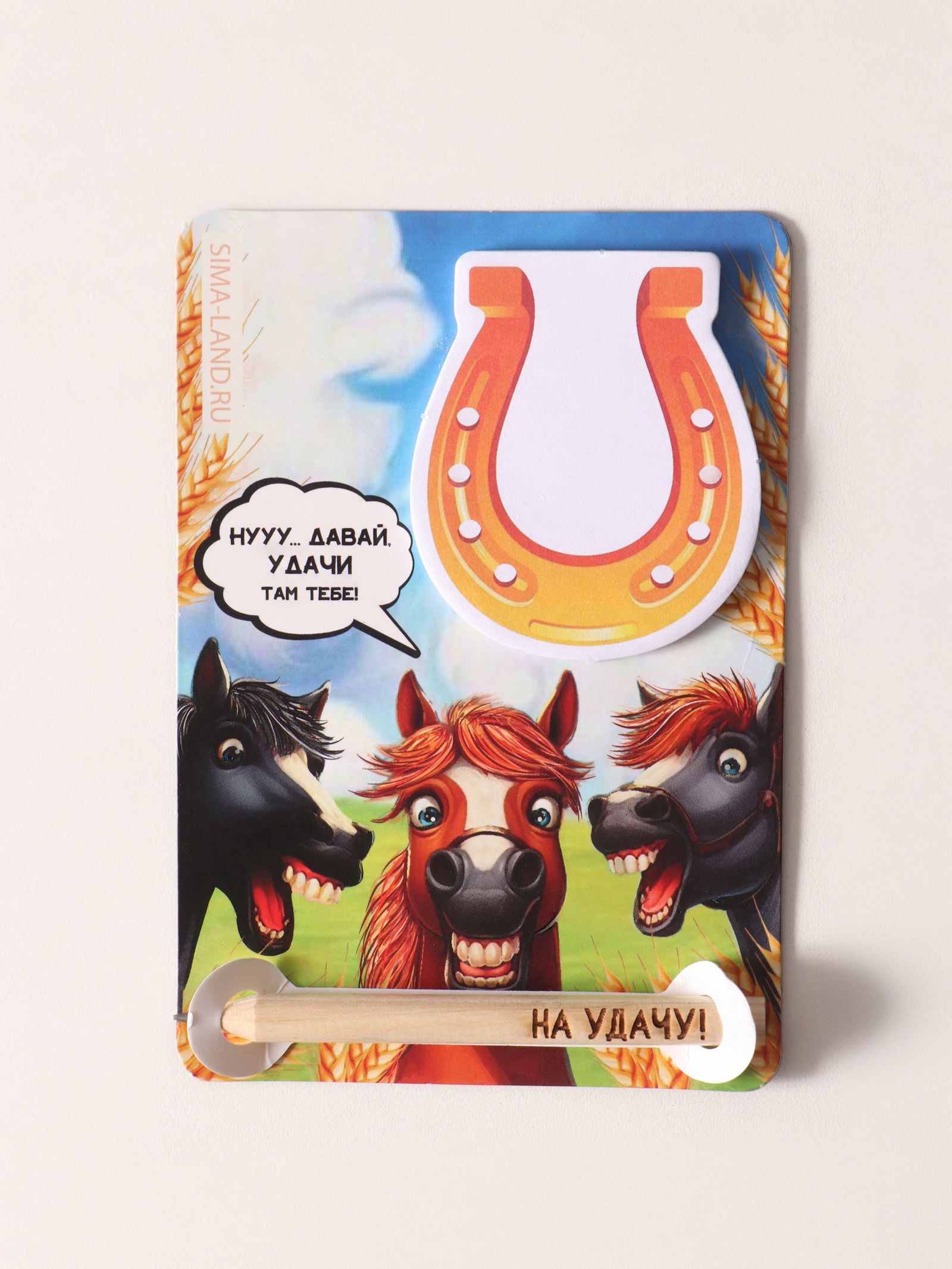 Магнит на холодильник с блоком для записей и карандашом "Подкова. На удачу!", 9x13 см, 7x13x0.4 см., Китай