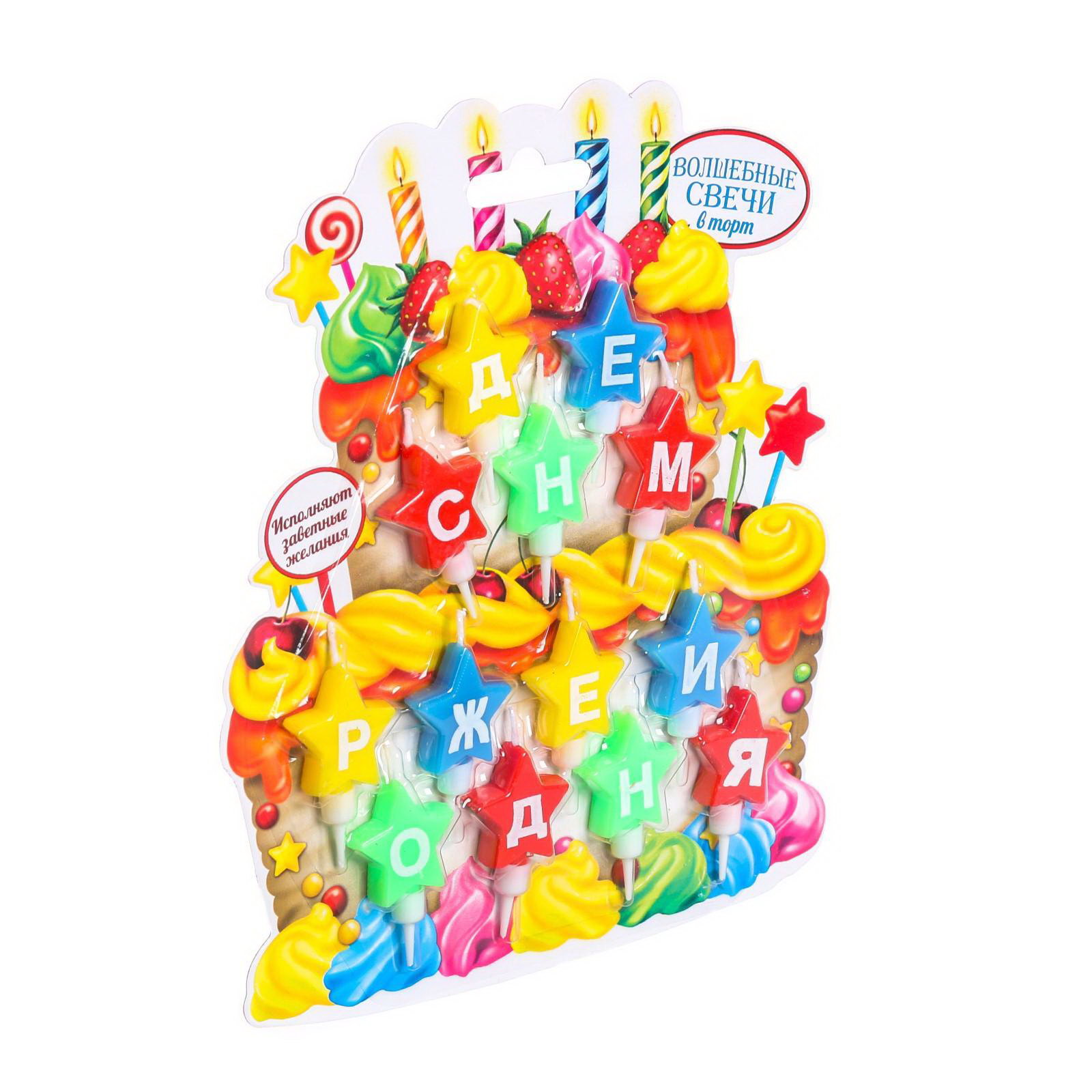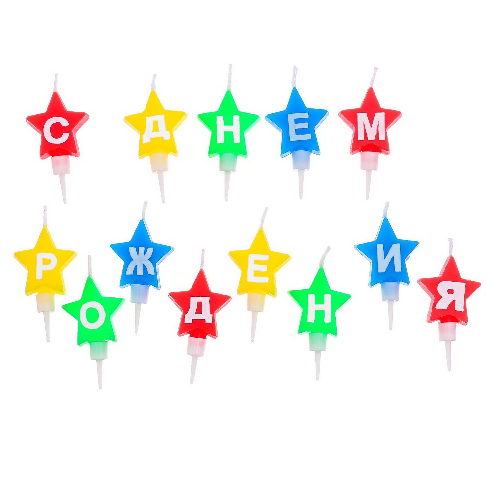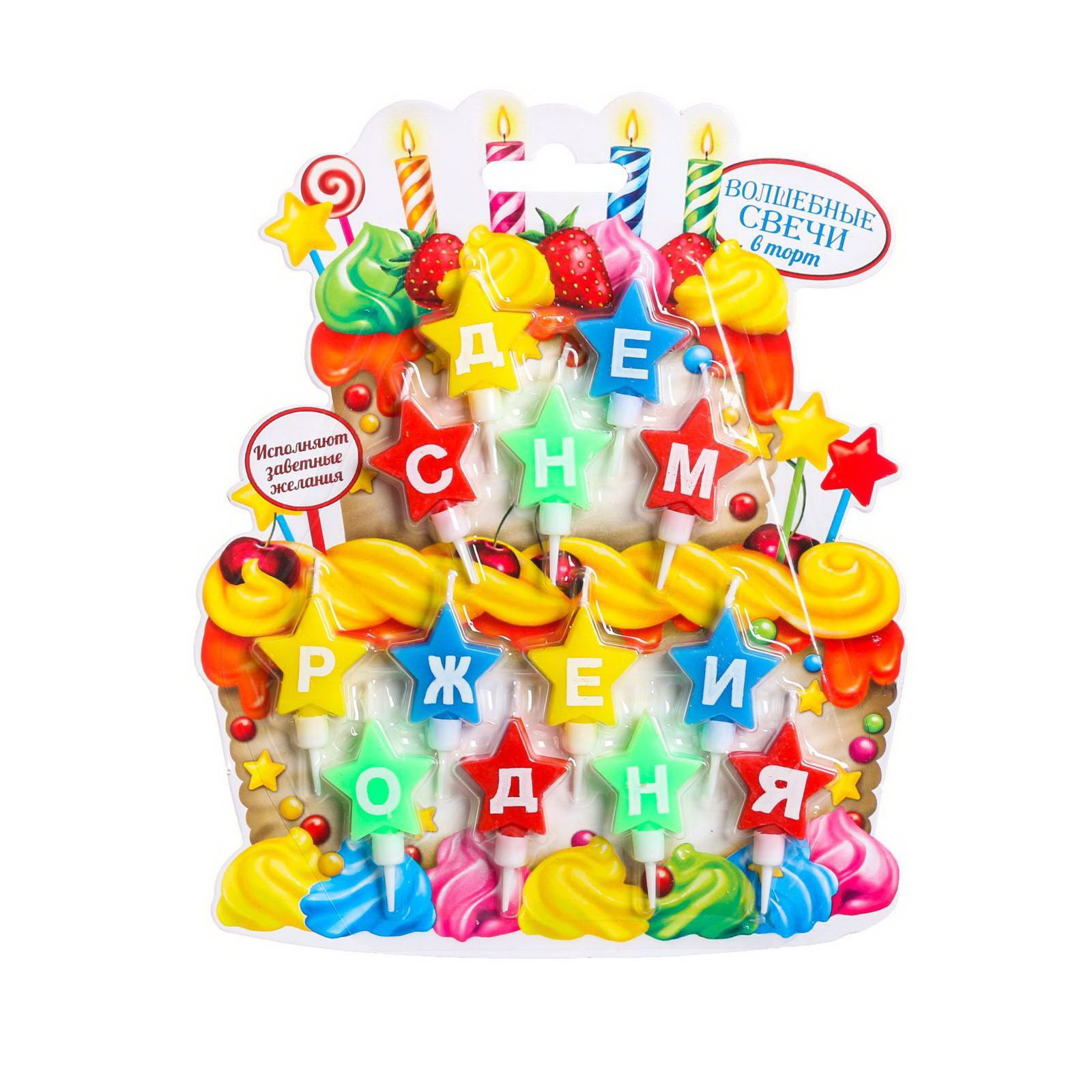 Свечи для торта звездочки "С днем рождения", 18.5x7.5 см, 15.3x18.6x0.7 см., Страна Карнавалия, Китай