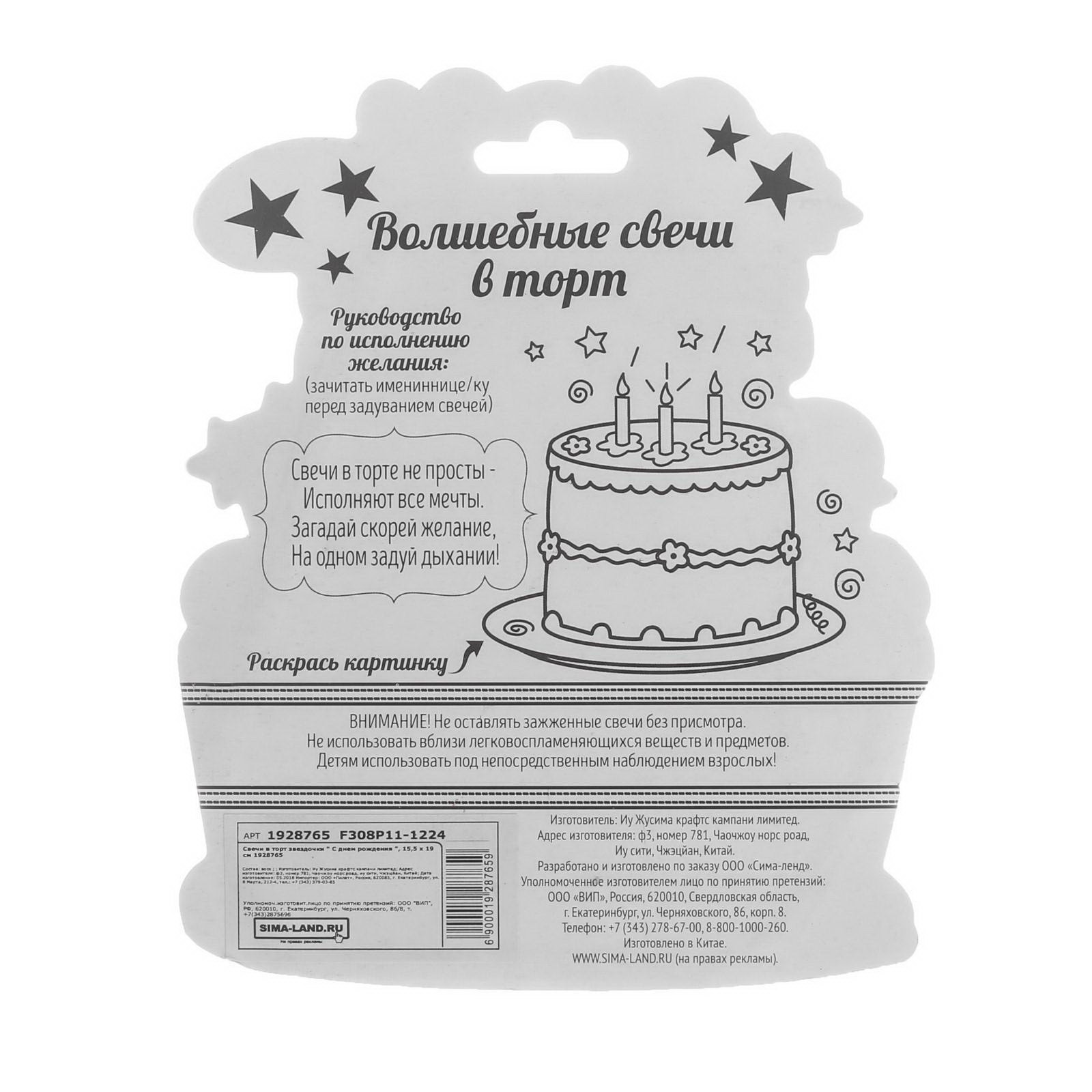 Вид упаковки: Блистер, Подложка Размер упаковки: 15 x 0.8 x 18.5 см. Форма свечи: Звезда tnved: 3406000000 tnved: 3406000000 Состав: Воск Тематика праздника: День рождения В наборе, шт.: 13 Темпер. ограничение НЕ НИЖЕ ℃: -10 Темпер. ограничение НЕ ВЫШЕ ℃: +25 Температурное ограничение: Нет Цифра: Без цифры Тематика: Праздник Для кого: Унисекс Цвет: Разноцветный Набор: Да Высота свечи, см: 4 Свечи для торта - это неотъемлемый атрибут праздника. Набор свечей станет прекрасным украшением торта и других кондитерских изделий по случаю дня рождения, юбилея и любого другого торжества. Украсьте угощение стильными свечами, чтобы сделать особенный день ещё более ярким и незабываемым. Для того, чтобы свечи не задувались, им нужно дать 60 секунд разгореться, после чего их можно будет задувать, но уже через несколько секунд, как они погаснут, свечи загорятся снова. Для того,чтобы свечи все-таки потушить, их рекомендуется примочить водой или придавить фитиль свечи. Изготовлены из высокоочищенного пищевого парафина, который не влияет на вкусовые качества блюд, а удобная упаковка помогает сохранять свечи при длительном хранении и транспортировке. | ||